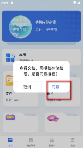 进入后,获取手机内部存储权限,点击【文件】以获取相应权限