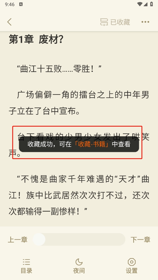 3、选好后进入小说,左右滑动就能切换阅读页面。
