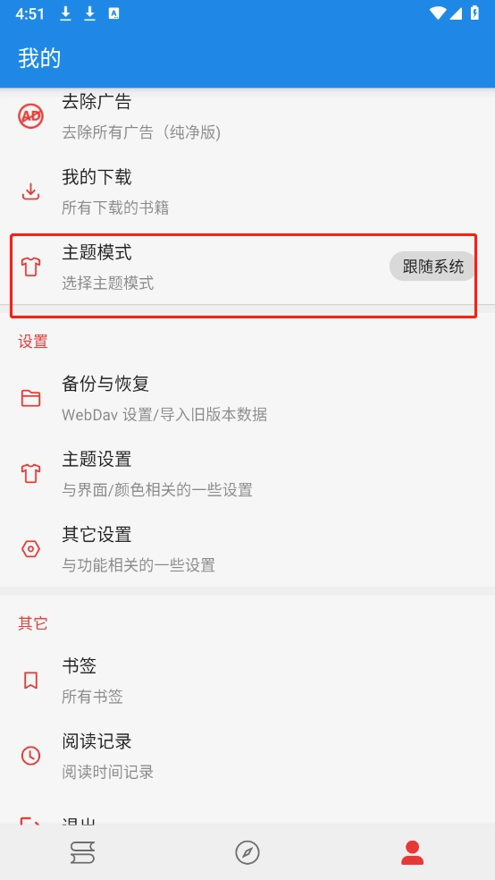 2、点击“主题模式”。