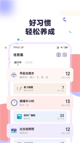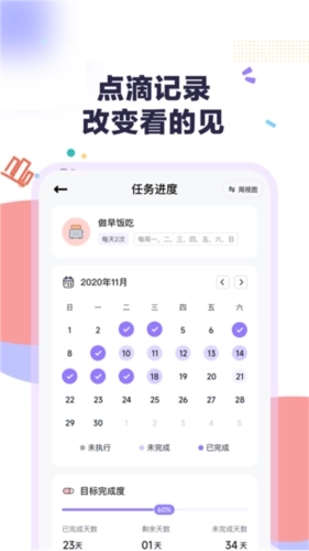 多维度数据展示,能让你迅速知晓每个目标的坚持天数与完成进度,见证每日成长,积累满满成就感。