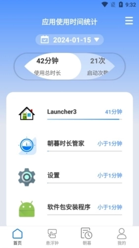 1、应用使用时间统计:朝暮时长管家详细记录您手机内各个应用的使用时间和启动次数。通过直观的统计数据,您可以了解自己在不同应用上花费的时间,从而更好地管理和调整自己的应用使用习惯。合理分配时间,专注于重要任务,提高工作和学习效率。