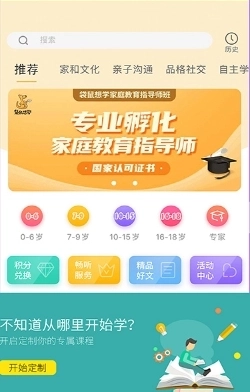 1、提供了0-6岁、7-9岁、10-15岁、16-18岁年龄段的家庭教育课程任选;