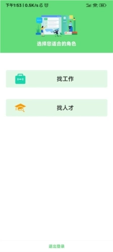 2、进入首页后,能看到这款软件的页面设计十分清新简洁,主要分为求职与招聘两大板块。