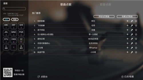 3.支持歌手点歌,提供歌名、歌手、首字母联想点歌以及分类点歌等多种点歌方式;