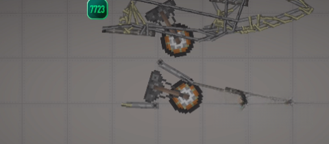 1、要制作简易的起落架,需将轮胎、引擎与铁块连接起来,从而达成起落架的功能。