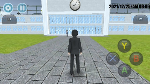 操作控制说明:按下Y键,对应执行左下角显示的操作提示;B键的功能为捡起或放下武器(武器可在学校大门处,或设置面板的添加选项中获取);A键用于实现跳跃动作;X键用来发动攻击,若手上未持有武器,按下X键角色会蹲下。L键负责切换方向,F键则是用于切换视角。
