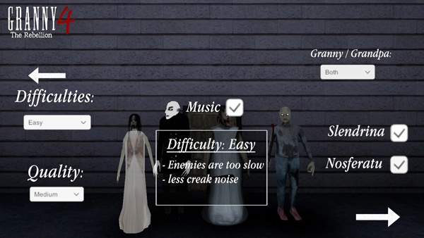 由Fighter Gamer推出的系列第四部惊悚游戏,延续了前作紧张刺激的玩法与氛围感拉满的阴森配乐,支持多语言切换(可在设置中调整)。玩家将继续与那位令人胆寒的老奶奶展开智力较量,本次难度全面升级,你准备好冲破她的封锁,逃离险境了吗?