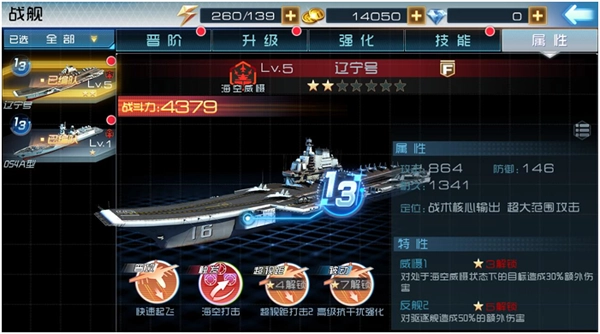5星解锁特性Ⅱ,各战舰特性和效果不同;