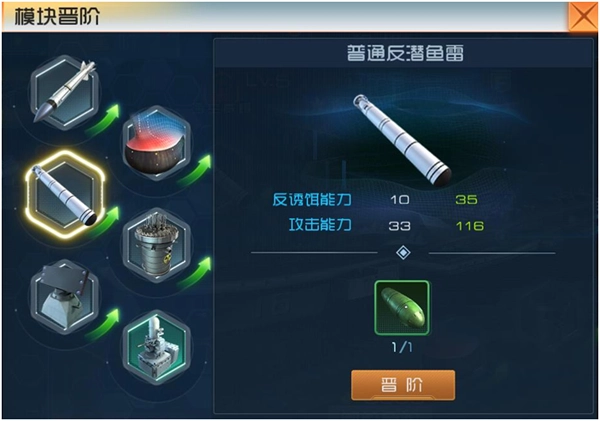 模块晋阶为a阶,战舰最高等同晋阶到a阶。