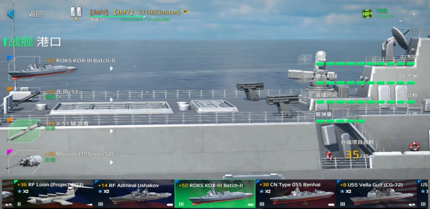 所以,我们的阵容范围就这样确定了:由各国的15级舰船加上极少数13级战舰构成整体阵容的大名单,并且会在游戏的不同发展阶段,依据不同侧重点来推进发展。