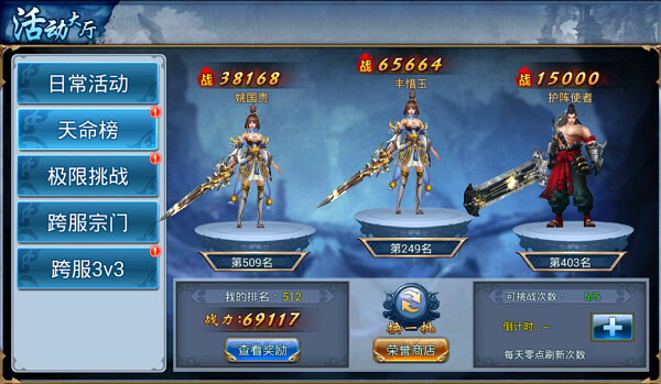点击界面上方的【活动大厅】图标,接着选择【天命榜】这一选项。