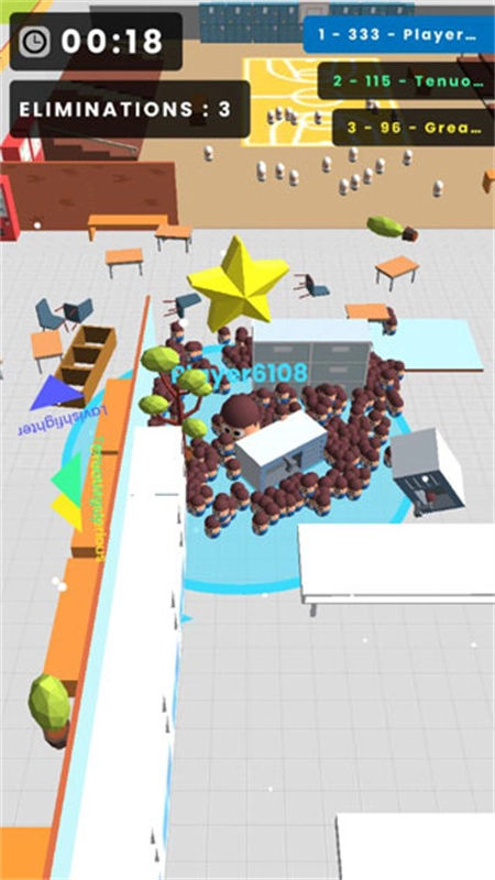 总体而言,传统IO类游戏的玩法大多大同小异,核心目标都是争夺第一。而这款游戏的玩法更为简洁,在2分钟的限时内,你的目标是通过招募更多人群来壮大自己的阵容。随着人数增长,强大的力量足以推倒前方所有障碍——挡板、教室墙壁都不在话下,但前提是你集结的人数足够多。当然,除了吸纳各处空白、未站队的人物外,击败比你弱小的人群也是变强的关键。所以,赶快来体验吧!