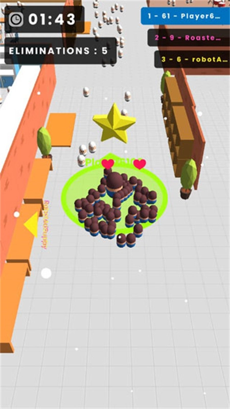 1、游戏开始时,每位玩家都拥有一名粉丝,地图上分布着多样的地形。初期建议不要与其他粉丝群体发生冲突,优先去吞噬那些静止的中立粉丝。吞噬后你的粉丝群体就会壮大,能看到一群粉丝跟着你四处移动,画面十分生动有趣。