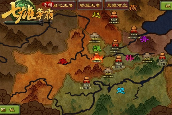 【随时随地,全新国战征伐天下】 1、《七雄争霸》是一款注重“实时国战”的策略国战手机游戏 2、游戏地图分布齐、楚、燕、韩、赵、魏、秦七个国家 3、玩家可以在全服地图的城池上自由排兵布阵,对城池进行移动或攻击 4、实时国战中,所占城池越多,军资奖励则越多 5、而在国战中击杀其他国家所属城市的玩家数量越多,就能跃居登上世界地图杀敌榜,尊享万人景仰的荣耀