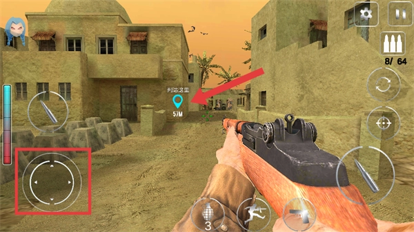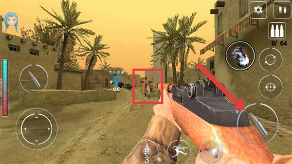 4、推开敌方士兵后,瞄准对方士兵,点击射击按钮将其消灭,与此同时继续朝着目标位置推进。