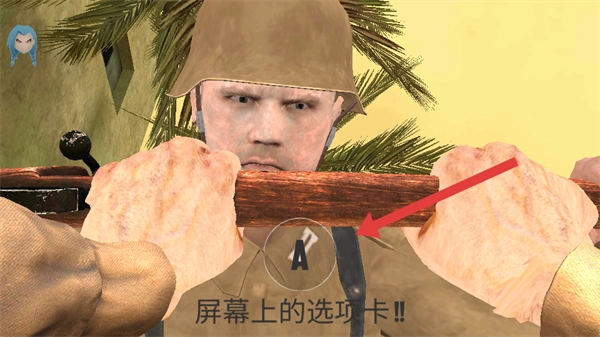 3、抵达指定位置触发剧情后,持续点击箭头指向的【A】键,把敌方士兵推开。