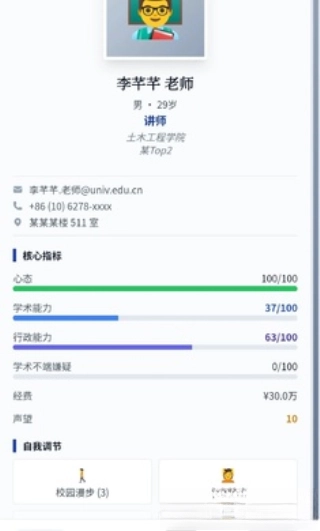 4.上述不同的调节与提升举措,都能助力你提升两项核心属性——心态值与学术能力值,这两项属性直接影响后续的职业发展进度。