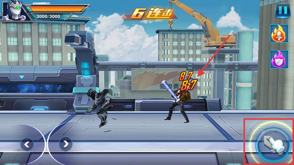 3、敌人出现后,点击右下角的攻击按钮,持续攻击以积累【6】次连击,每次攻击会造成【87】点伤害,以此提升输出效率。