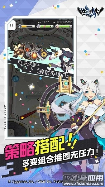 2、战斗系统基于弹珠台设计,三人小队通过点击屏幕弹射角色撞击敌人积累技能能量;释放角色技能可造成更高伤害,击溃各类敌人。