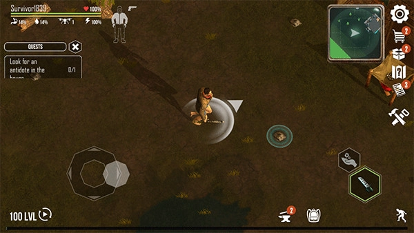 1、首先进入生或死生存游戏,然后移动摇杆控制人物的移动方向。