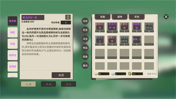 包含多种功能丹药,不同丹药有特定配方与效果,有的提升属性,有的祛除负面状态,有的解锁技能,合理炼制使用可助力修为提升与战斗,增强能力。