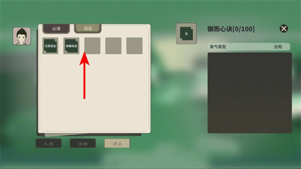 在心境界面中,可选取御燕心诀这类心法;心法作为修炼体系的核心要素,挑选适配的心法能够提升角色的真气。