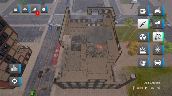 切换诸如破坏笔这样的工具,对建筑结构实施精细的破坏操作,可以加快建筑损毁的进程。
