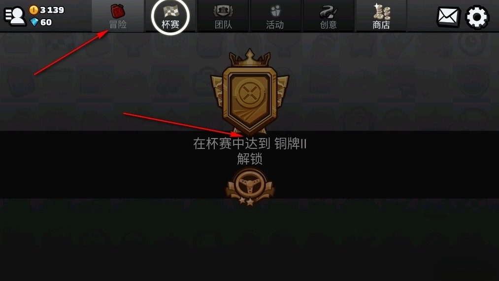 冒险玩法需要玩家达到杯赛铜牌2级后才会解锁;