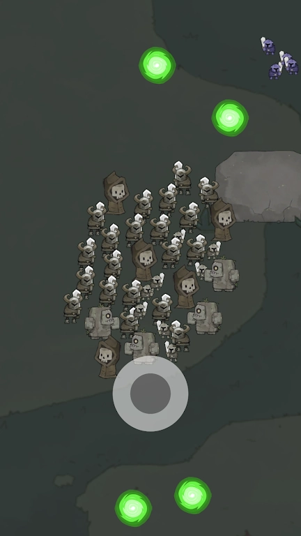 玩家通过点击屏幕召唤亡灵军团,在击败敌人后点击其尸体进行复活,将这些敌人转化为己方单位,以此逐步扩大军团的规模。