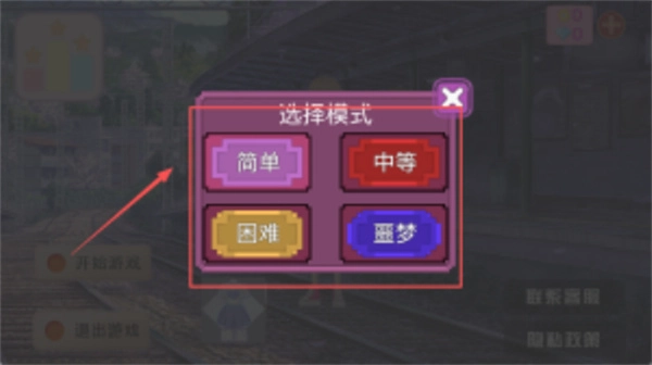 在模式选择界面,根据红色箭头的指引,选择排在首位的粉色简单模式,该模式很适合初次体验的用户。