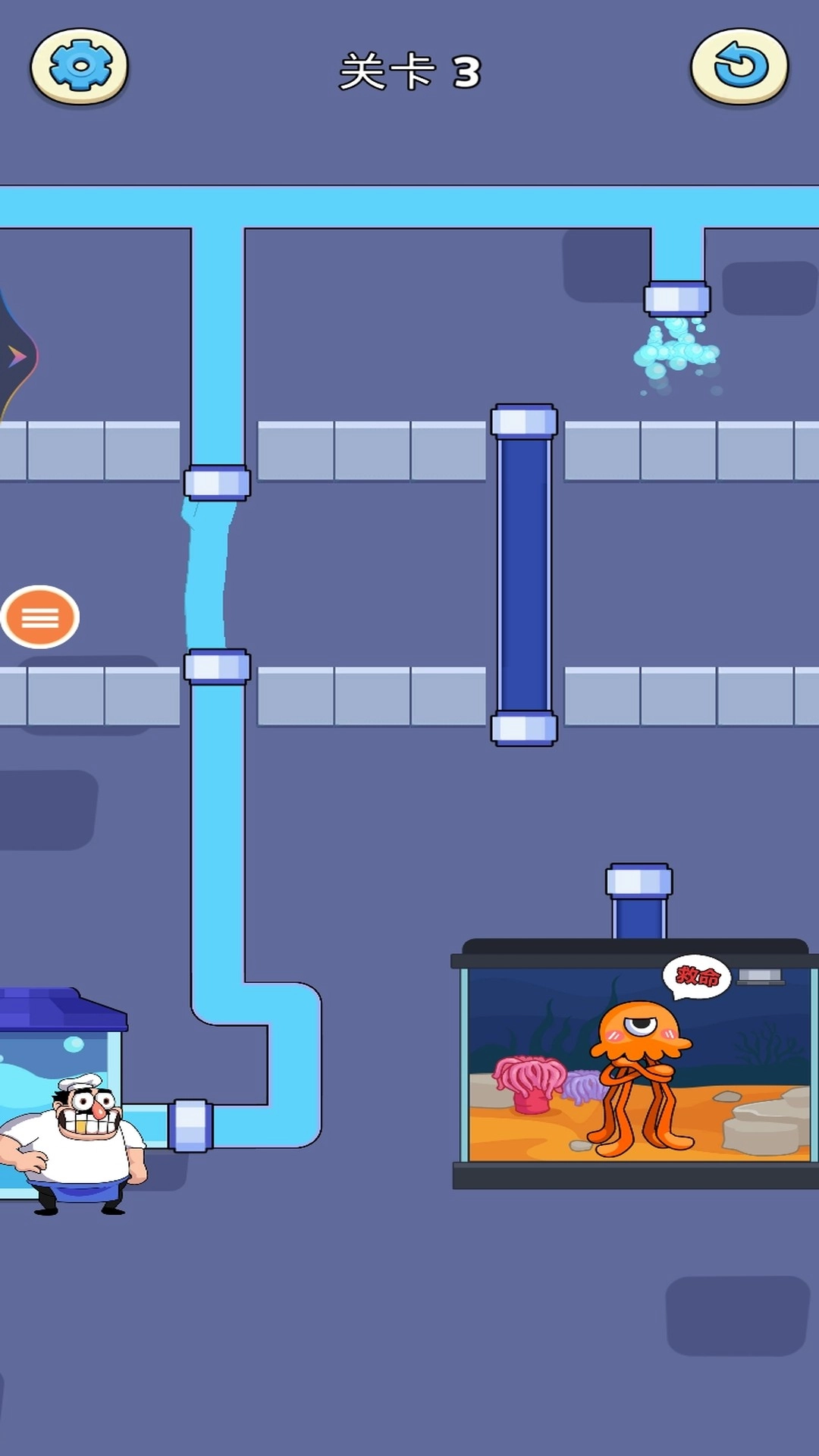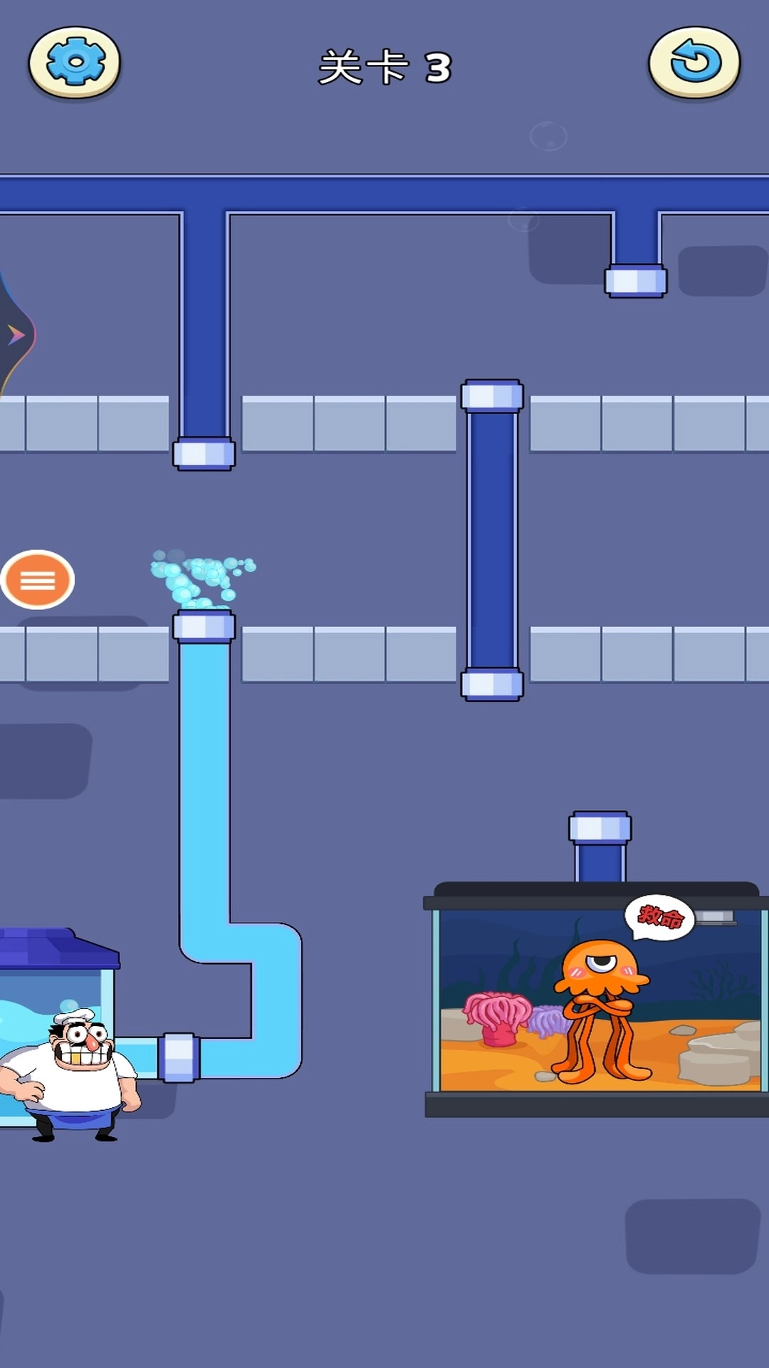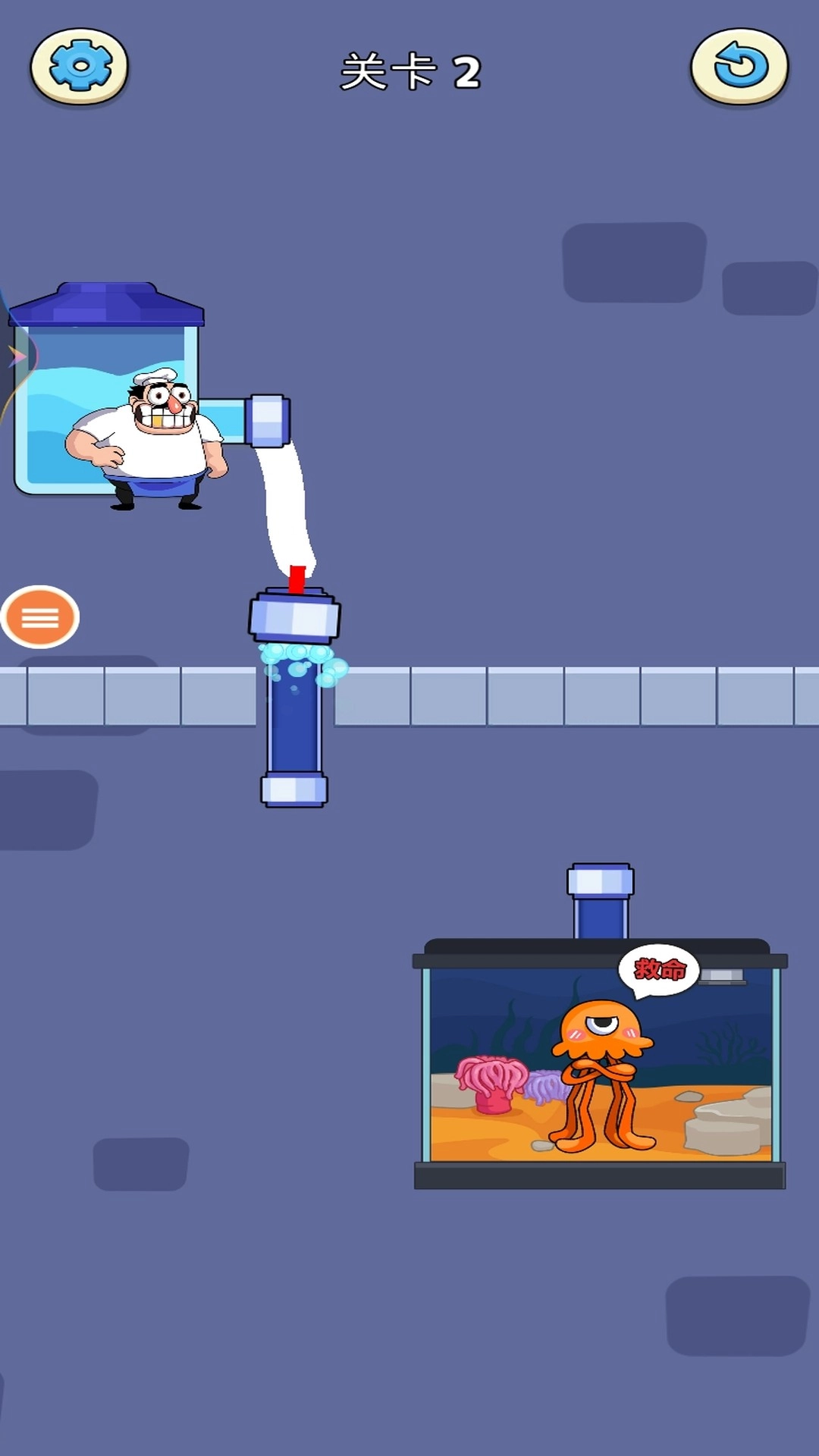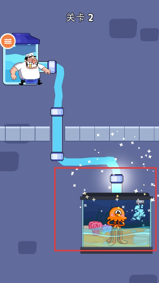 成功把水导入鱼缸,救下章鱼,达成关卡目标,得到游戏奖励。