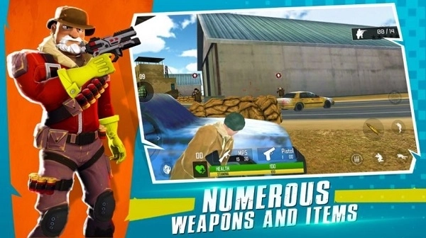 1.玩家需在一张地图上和其他玩家展开战斗,地图里散落着各式各样的武器与道具。