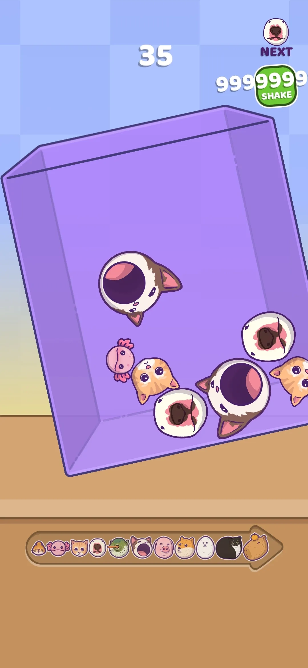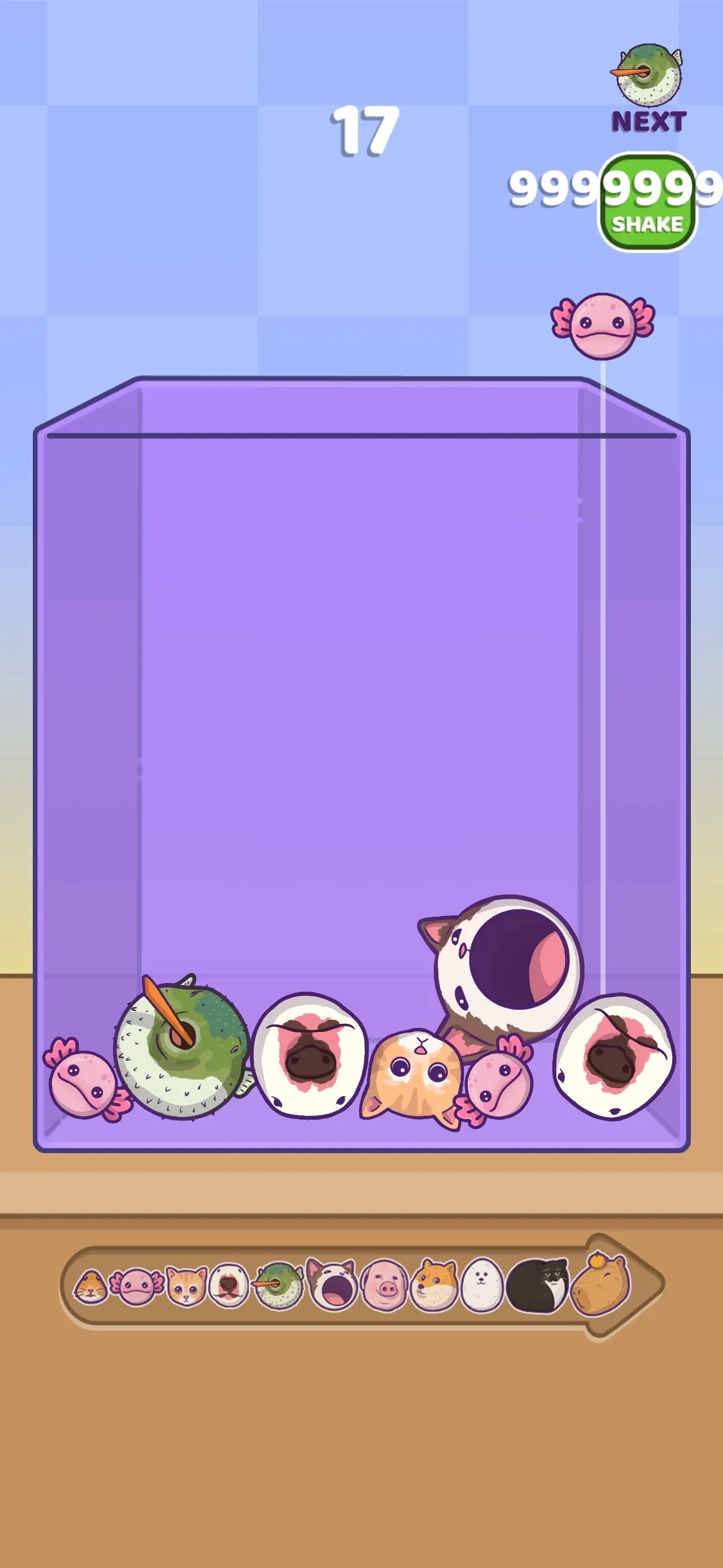 2.各种各样的动物持续掉落,相同的动物相遇后会合并成体型更大的动物。