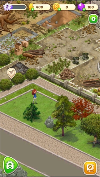 1、首先大家打开游戏可以看到庄园很乱,所以我们要开始整理,点击中间打钩的按钮。