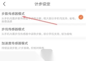 4. 于“计步设定”界面中勾选步数传感器模式,如此便能计算出行走的里程。