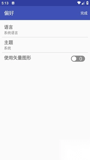 2、点击调节设置板块,这里是语言和主题的设置,以及矢量图形的开关;