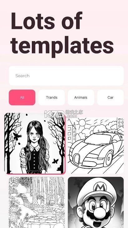 追踪模板:了许多追踪模板,涵盖了动物、汽车、自然、食物、动漫等主题,让您可以选择喜欢的模板进行绘画创作。
