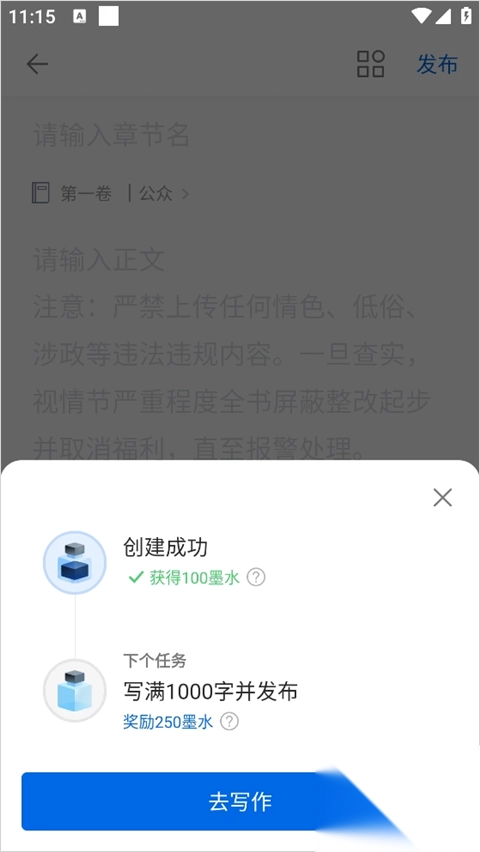 快捷发布:无须复制粘贴,写完一键发布至阅文旗下站点。