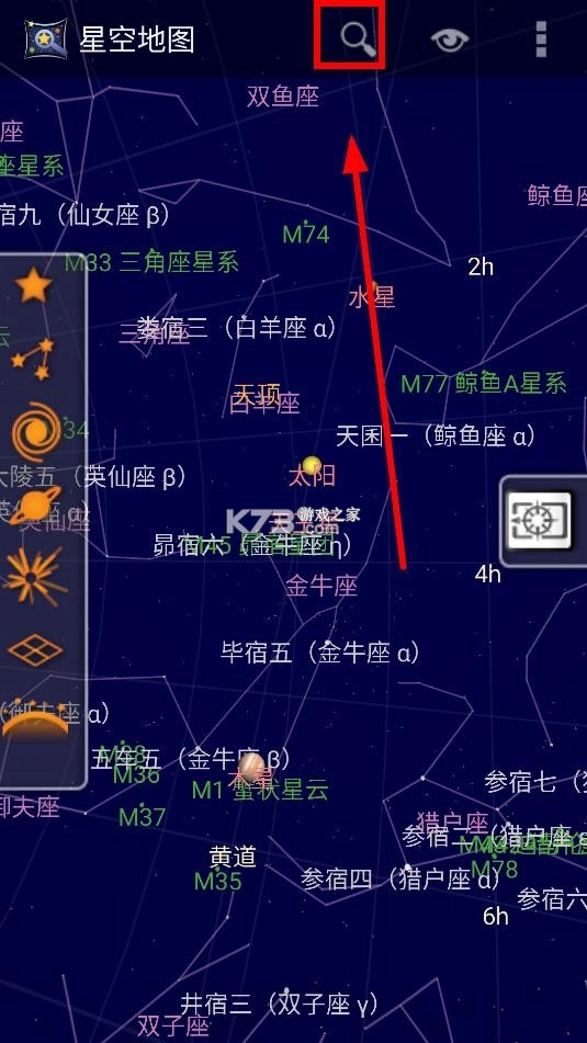 1. 轻点屏幕,界面随即弹出,在该界面上方找到搜索按钮并点击,即可搜索你期望看到的星星。