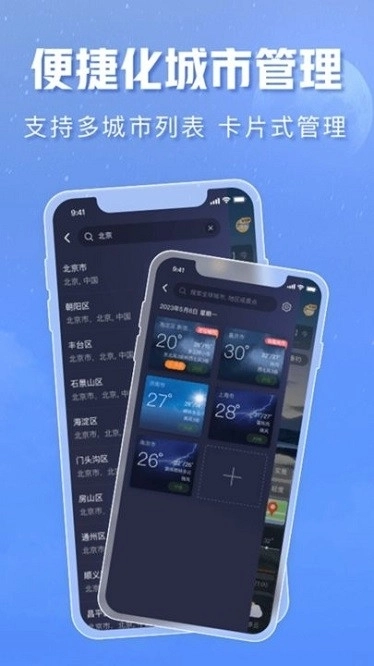 不同的气象主题皮肤,在不同的展示样式之间随意转换,使气象预报更加直观。