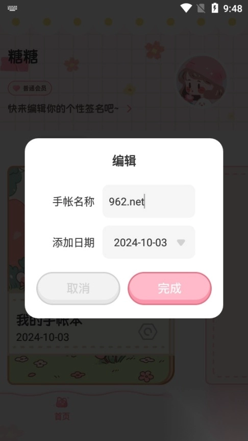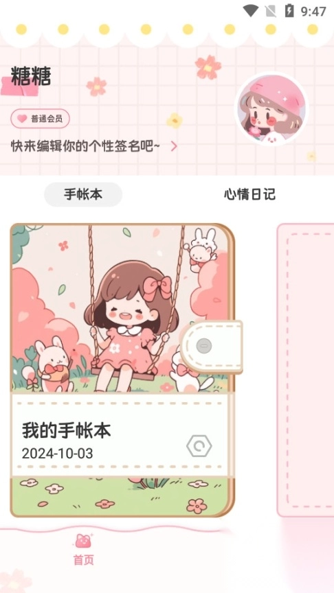 进入糖糖手帐首页之后点击我的手账本