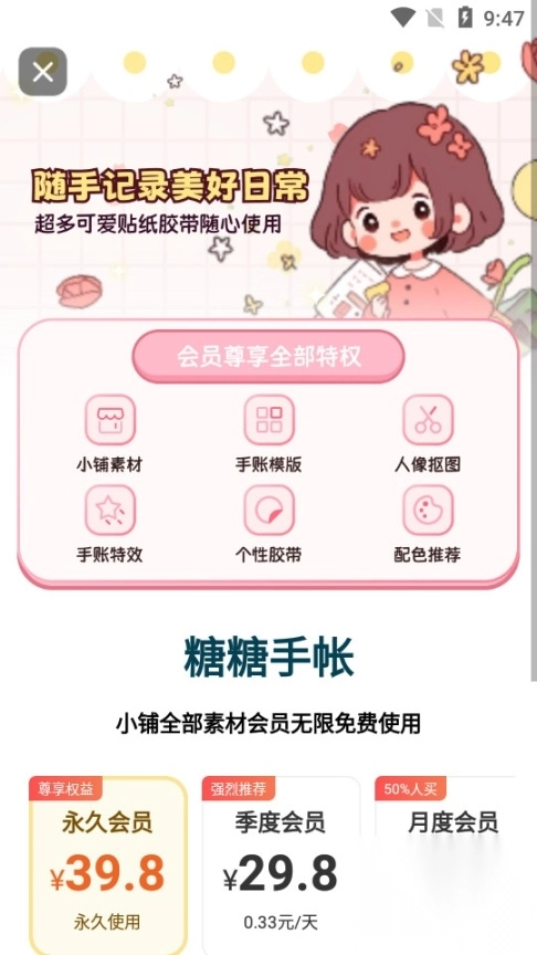 的甜甜笔记本,随时记录;这里有着海量手帐模板与素材,像各类风格的贴纸、胶带、背景图等都一应俱全。用户能够依据自身喜好进行挑选与编辑。不仅如此,用户还能够自定义精美素材,让手帐作品更具独特性与个性化。手帐模板风格多样,涉及日常、