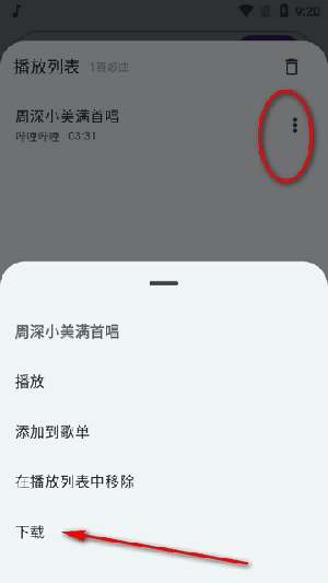 3、打开播放列表点右侧三个点也可以下载。