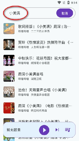 2、打开软件,进入搜索界面,搜索需要播放的歌曲或合集。