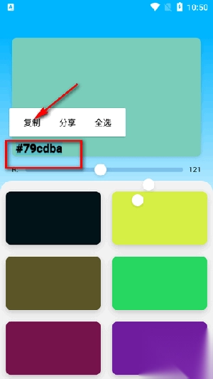 3. 待调整至合适颜色时,双击颜色代码即可完成复制。