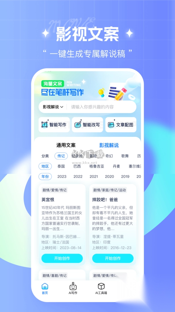 3、实时掌握当下最为流行的写作主题与题材,使用户的创意紧跟时事步伐。