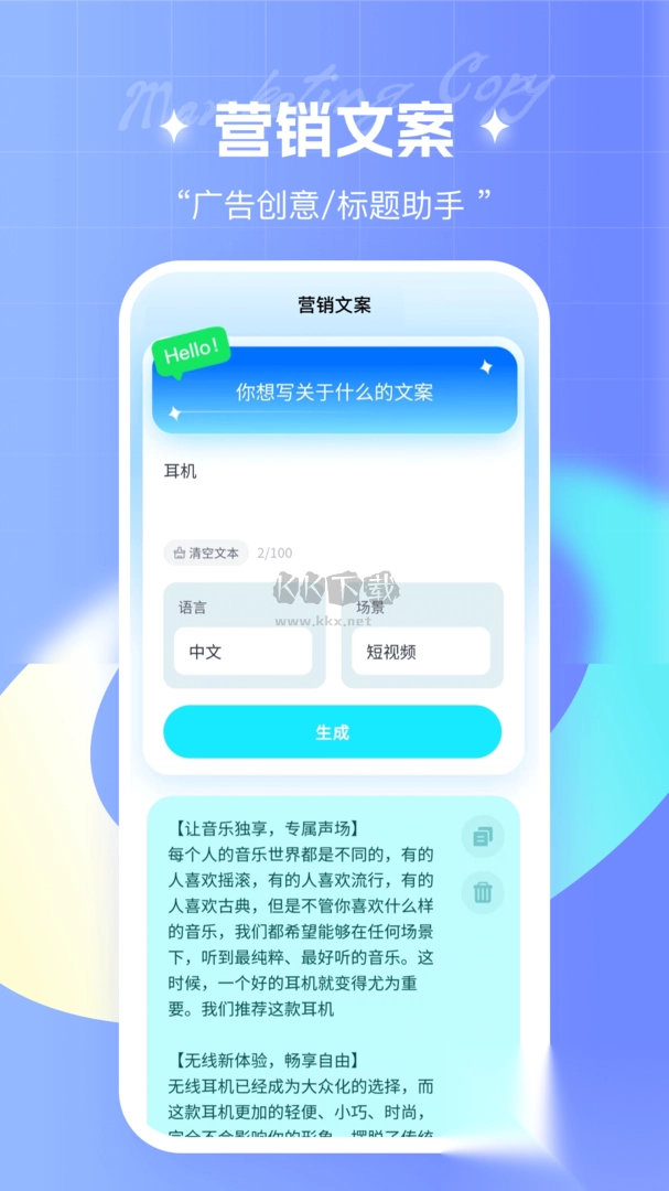 2. 用户能够通过输入关键字,迅速创作出精美的文字。