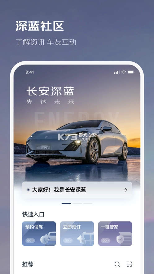 长安深蓝 APP 是全方位的汽车资讯服务平台,是长安深蓝汽车打造的线上汽车平台,软件功能强大,涵盖各类最新获取的汽车资讯信息,大家可一键查询了解,还能在线预约试驾,带来更多优质服务。可在上面参加官方组织的各种车友活动,与其他用户分享自身经验。新用户能查看用车指南,软件为用户提供最优质服务,还能查看充电桩位置。每天推送不同内容,功能十分强大,还能学习汽车保养知识。- 关注最新官方资讯,紧跟前沿动态。