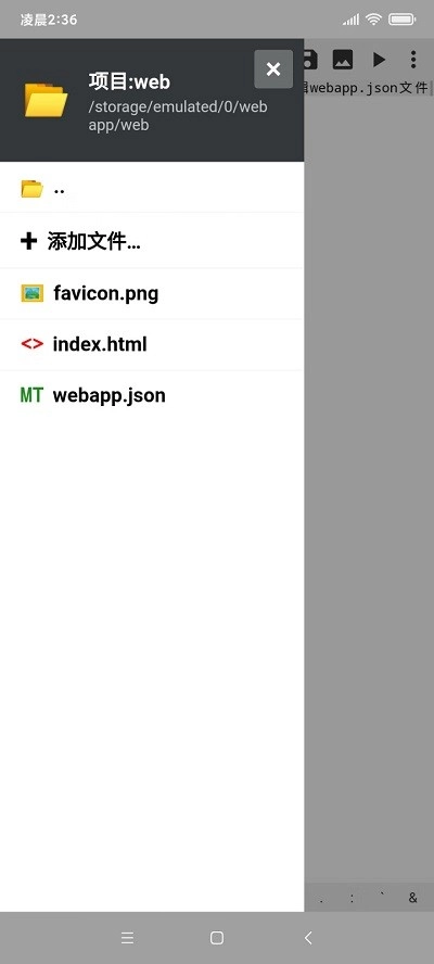 支持创建及编辑html、js、css、json等格式的文件