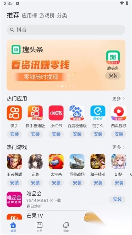 1、主页面一致(应用、游戏、探索、我的)